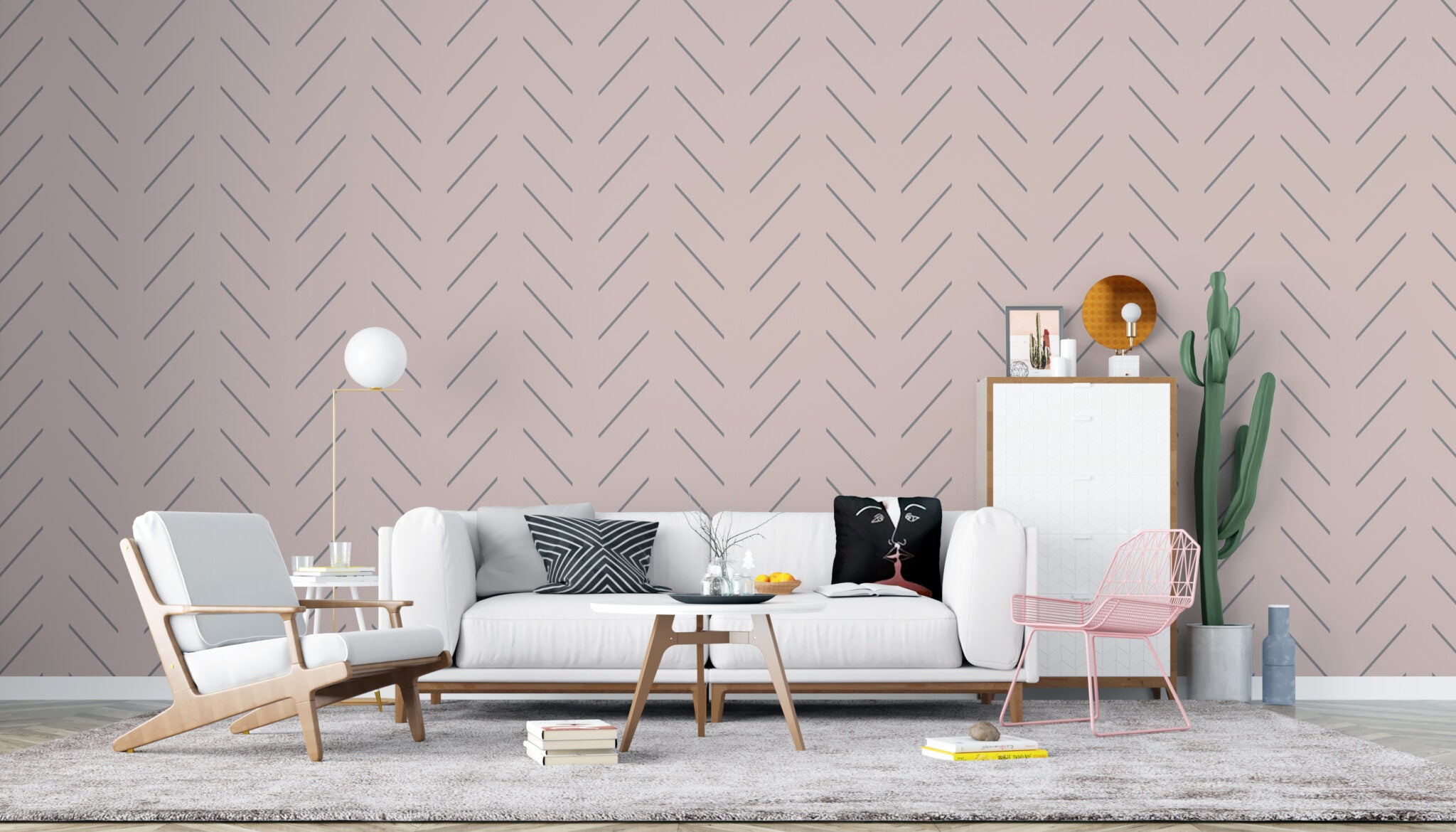 טפט פישבון מינימליסטי אפור ורוד