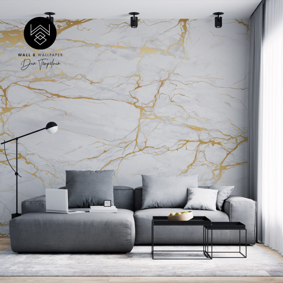 טפט שיש לבן נגיעות דמוי זהב